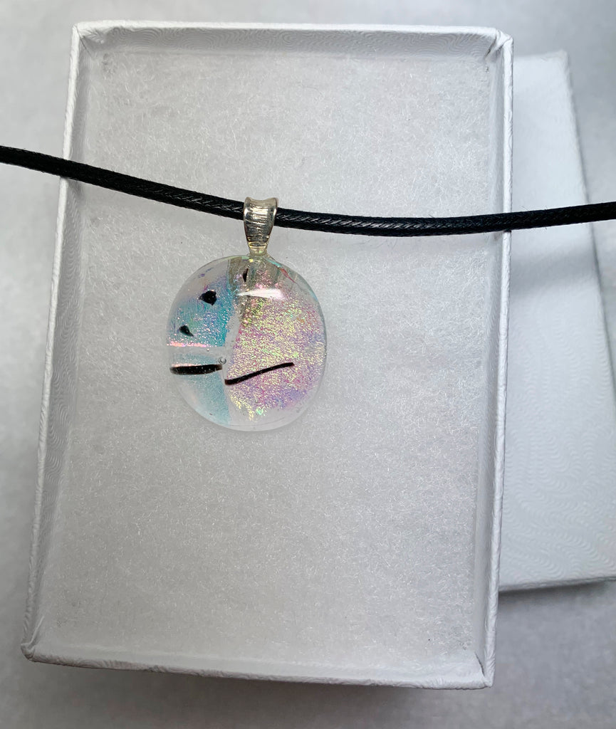 Each dichroic fused glass piece starts with separate pieces of glass layered and then melted in the kiln into a single piece of glass. Each is handmade and unique.